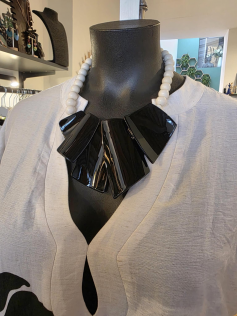 Collier en plexi très chic et qui convient à tous les cous car la rallonge est très grande.