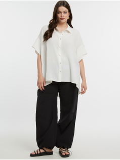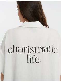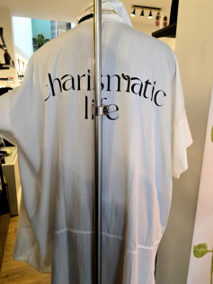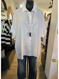 Chemise oversize magnifique avec inscription dans le dos. Elle tombe super bien. En 76% viscose et 24% nylon. plus longue à l'arrière (environ 80 cm)