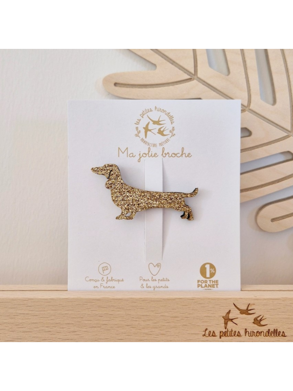 Broche teckel dorée