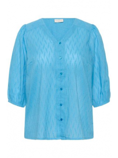 Petite blouse simple et plutôt fine et légère au tissu texturé. La couleur correspond à la photo où je porte la blouse. En 100% coton. Hauteur environ 66 cm.