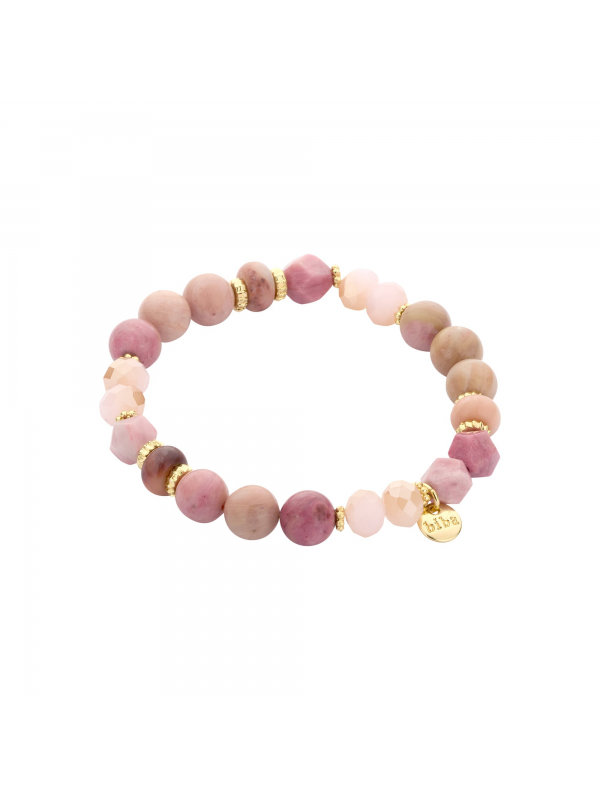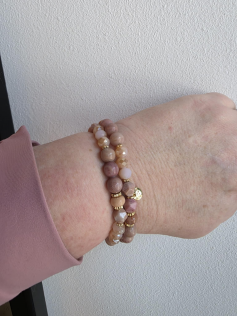Bracelet rose en pierres naturelles, cristal et métal sans nickel. Convient pour les poignets plus larges. 20 cm de diamètre.