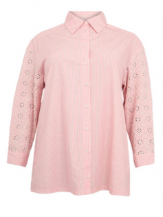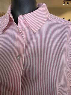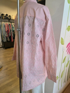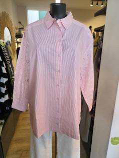 Très belle longue chemise en coton bio et broderie anglaise. Elle est magnifique et raffinée avec ses petites lignes rose et blanc. Broderie au dos et aux manches. Bien longue