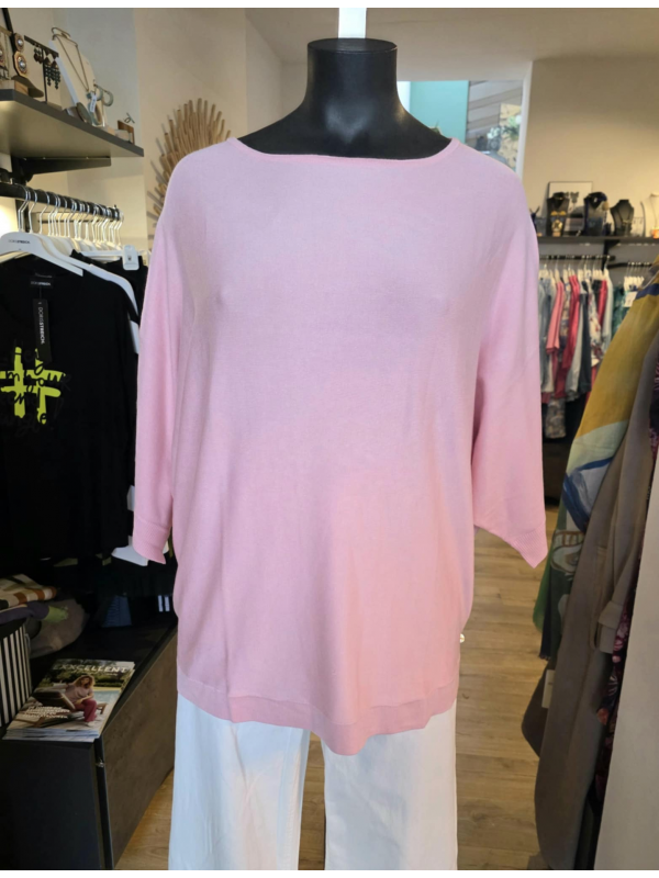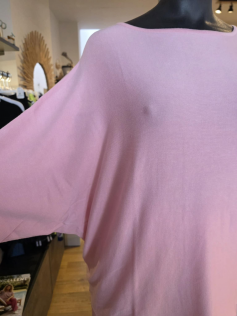 Petit pull tout mignon tout simple et tout printanier pour commencer la nouvelle saison. Col bateau sans emmanchures. En 81% viscose et 19% nylon. Hauteur : 67 cm.