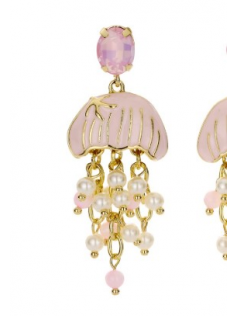 Boucles en émail, perles de verre et métal doré sans nickel. Hauteur environ 5 cm.