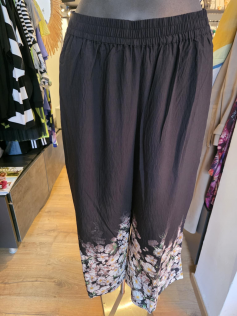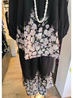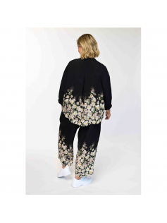 Pantalon ample noir avec impression fleurs des champs dans le bas. Il est prévu large donc confort assuré. En 85% viscose et 15% nylon. Top avec la blouse assortie en suggestion.