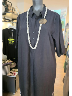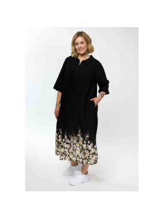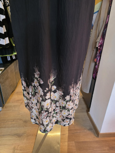 Superbe robe décontractée dans un beau tissu en 85% viscose et 15% nylon. Bas imprimés de fleurs des champs. Forme ample, manches au coude. Col polo. Longueur environ 130 cm.