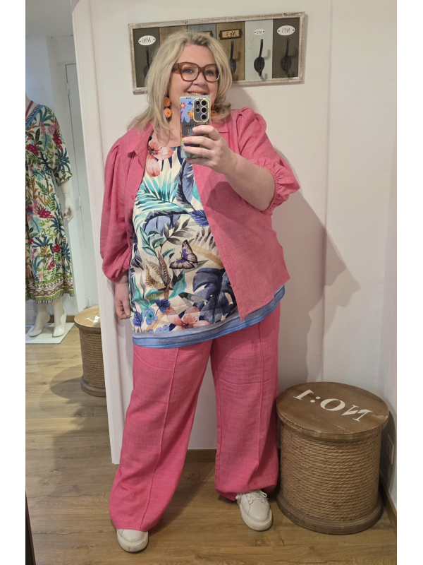 Magnifique top de haute qualité, très beau tissu raffiné. Il taille bien. Super léger. A porter seul ou avec une surchemise ou un blazer. Hauteur : 73 cm. En 82% viscose et 18% polyester.
