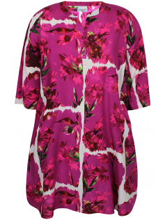 Robe au tissu flamboyant en 100% viscose. Pans arrondis sur les côtés. On peut la porter seule (environ 105 cm de haut) mais aussi avec par exemple un long pantalon blanc en lin pour un look bohème chic.