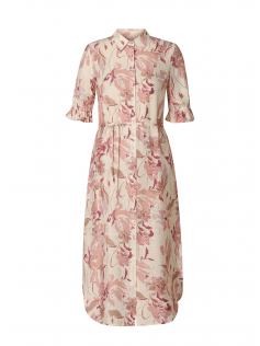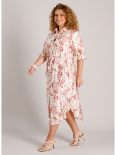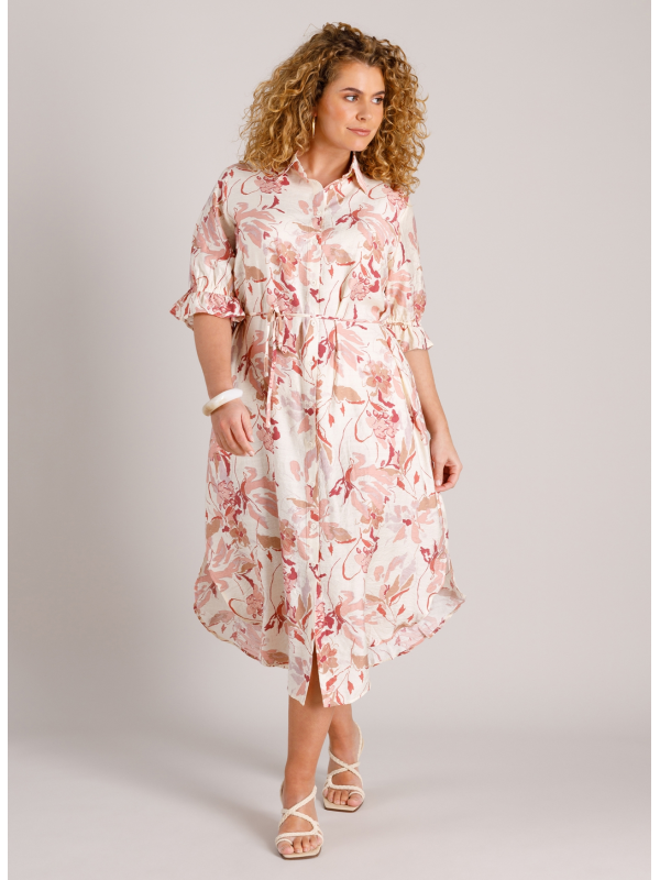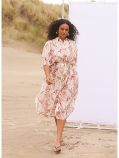 Robe à l'imprimé romantique avec manches au coude. Fine ceinture en tissu assorti à porter ou pas. Hauteur environ 130 cm.