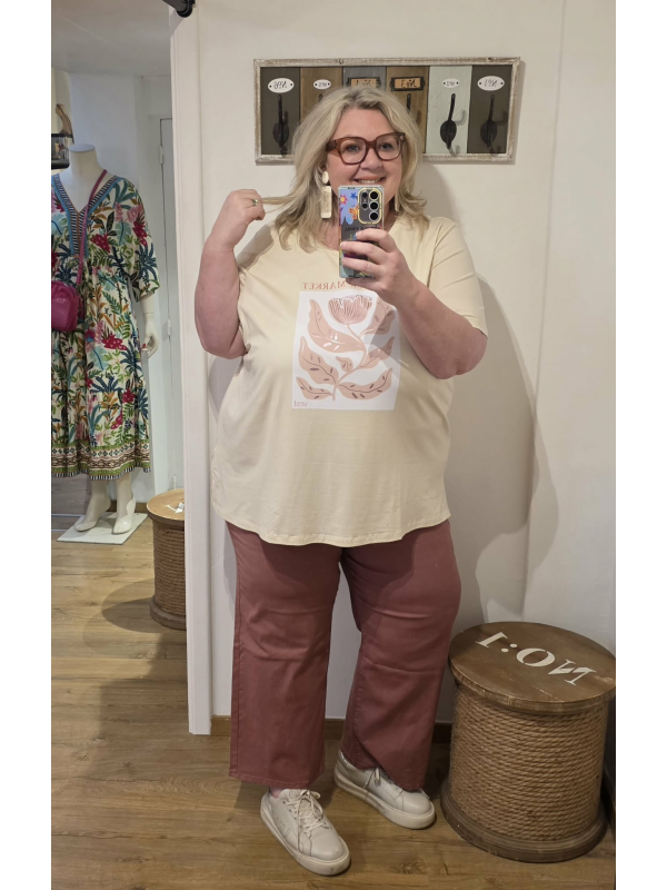 Tee-shirt avec petit imprimé sympa en ecru et en coton. Hauteur environ 69 cm.