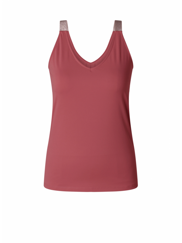 Petit top en matière "maillot" extensible en rose pâle avec des bretelles en lurex élastiqué. Hauteur environ 68 cm. En 75% polyamide et 25% élasthanne.