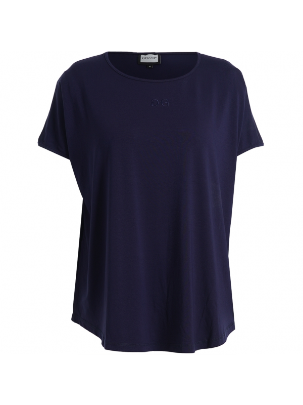 Le beau tee-shirt Gozzip que vous adorez existe aussi en marine. Il y a juste deux minis G logo de la marque brodés sur le devant mais on ne les voit pas sur la photo. En 95% viscose et 5% élasthanne