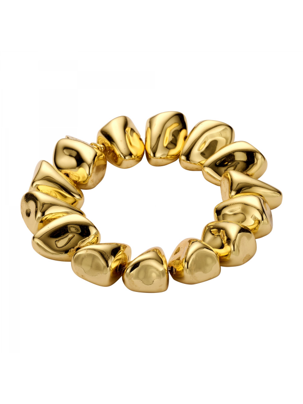 Un beau bracelet un peu épais en métal doré sans nickel, monté sur élastique et qui convient aux poignets plus forts (20 cm de diamètre) sans serrer !