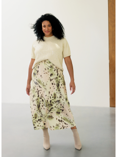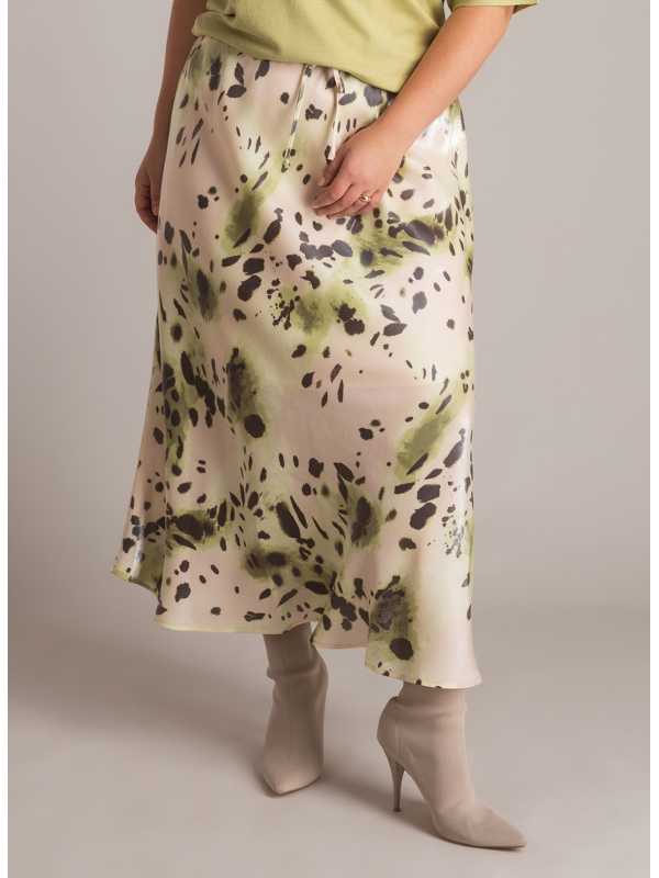 Jupe taillée en biais dans un tissu soyeux aux reflets extraordinaires. Coupe amincissante. Elastiquée à la taille. Hauteur : 92 cm. En 60% viscose et 40% nylon.