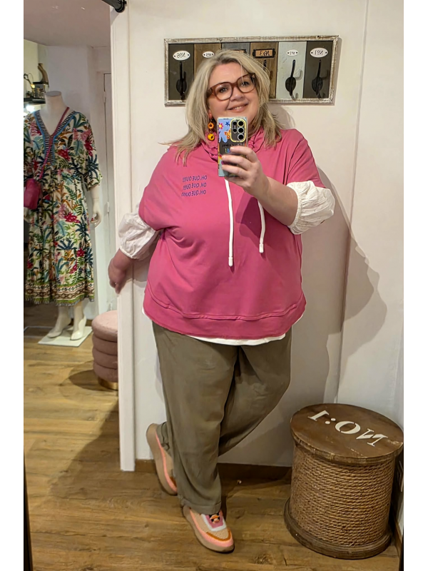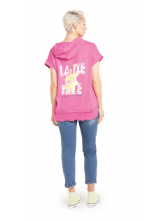 Sweat sans manche avec inscription la vie est belle au dos. Avec capuche, non resserré. En coton.
