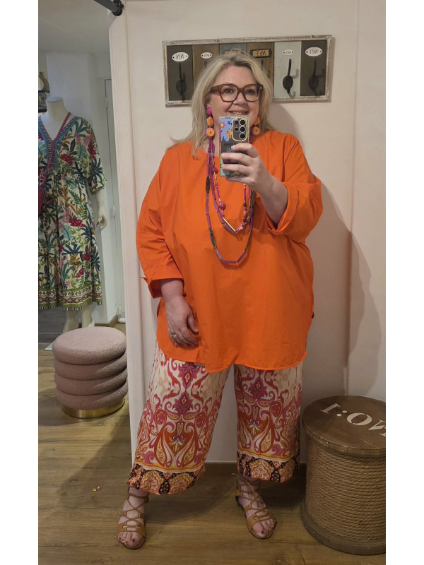 Tunique oversize dans une matière style parachute. Elle taille grand. Elle est pourtant en 100% coton. Hauteur environ 76 cm.