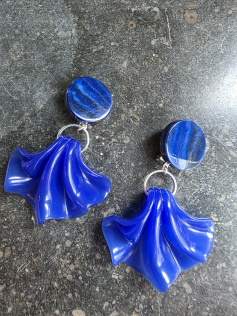 Majestueuses boucles de la créatrice Francine Bramli. Elles sont à clips qui ne font pas mal du tout (testé et approuvé pendant 8h). En résine durable et légère. Elles mettront de la magie dans toutes vos tenues car le bleu cobalt se marie agréablement avec le jeans, le blanc, le fuchsia, l'orange et le rouge. Hauteur environ 9.3 cm.
