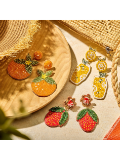 Boucles en perles de verre super bien finies. Pour le fruit je laisse courir votre imagination car je ne suis pas certaine du specimen. Tige en métal sans nickel. Hauteur : 7.4 cm