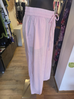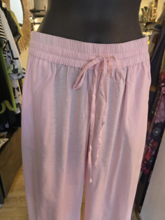 Pantalon dans un rose ultra pâle et doux en 100% coton. Taille élastiquée avec lien à nouer, jambes super larges. Entrejambe environ 80 cm.
