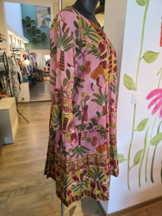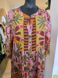 Très belle robe de la marque Escape en 100% rayon. Lumineuse et irisée. Elle ne taille pas plus grand comme les autres robes de la marque donc prenez votre taille habituelle. C'est une robe qui conviendra mieux aux belles plantes mesurant moins de 1m70 car elle n'est pas super longue (environ 103 cm)