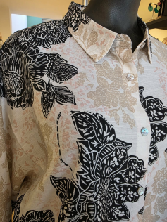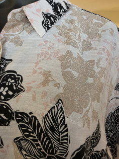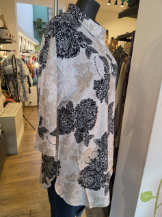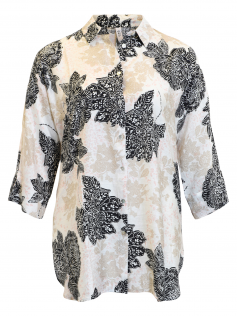 Chemise imprimée comme une dentelle en viscose. Forme facile agréable à porter. Manches 3/4. Hauteur environ 80 cm.