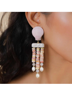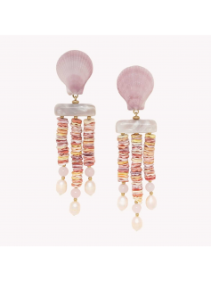 Voici les boucles les plus spectaculaires de la série Spiaggia Rosa de la marque Nature. Elles sont sublimes en coquillage Pecten nobilis, perles de cultures véritables et coquillage. Tige en laiton recouverte d'or fin. Une beauté spectaculaire. Hauteur environ 12 cm.