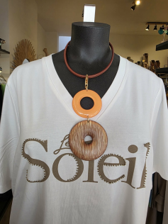 Grand collier en cuir de haute qualité avec possibilité de rallonge (bien long pas de soucis) et un magnifique pendentif. Une création signée Francine Bramli.