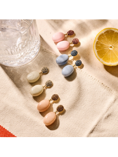 Boucles clips en métal résine et verre. Sans nickel. Ne font pas mal. Hauteur environ 4 cm.