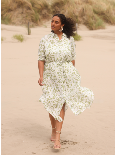 Robe toute fraîche et toute légère en 80% viscose et 20% polyamide. Boutonnée et éventuellement ceinturée si vous le désirez. Longueur environ 130 cm. Manches au coude. Vraiment agréable pour l'été et à porter de mille façons selon le dessus.