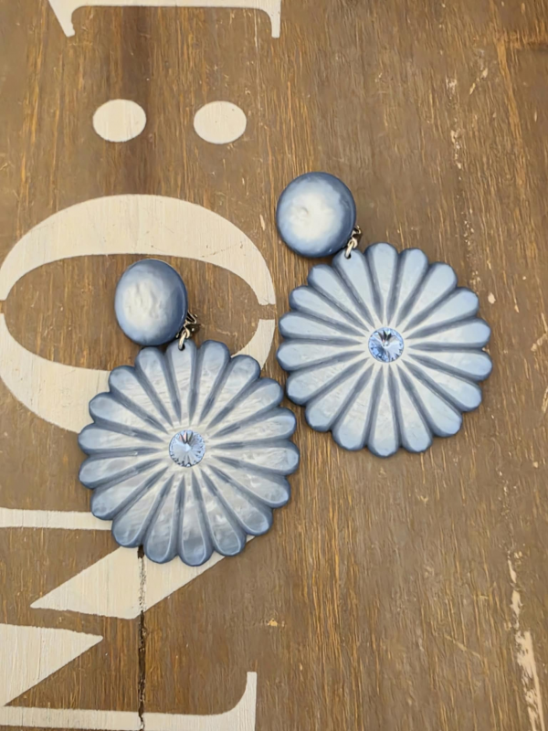 Création originale de Francine Bramli, ces grandes boucles sont absolument superbes. Hauteur environ 10.5 cm. Fabrication artisanale à Paris. De vraies merveilles que vous pourrez porter toute la journée sans abimer vos oreilles et surtout sans les sentir. Sans nickel, pinces arrières en laiton rhodié.