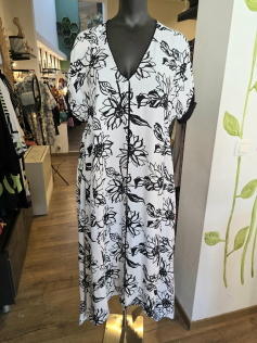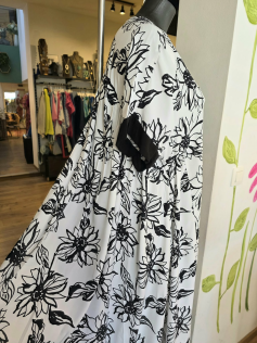 Longue robe évasée en viscose. Elle taille bien donc j'ai un peu revu la taille qu'il restait. Un peu plus cintrée au buste. Longueur environ 130 cm.