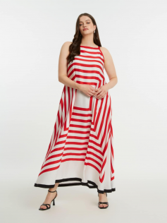 Longue robe spectaculaire mais tellement chic avec son look graphique. Forme évasée (mais attention au niveau de la poitrine, gardez la taille habituelle). Satin de très belle qualité. Hauteur environ 130 cm.