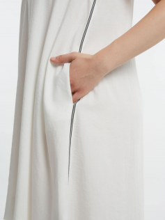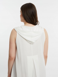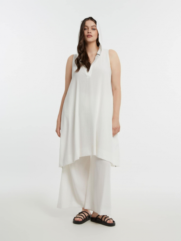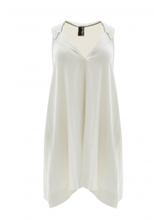 Longue tunique sans manches dans un beau tissu au tomber parfait. Avec une ligne noire sur le côté. On peut la porter aussi avec un tee-shirt dessous mais aussi une petite veste par dessus et un pantacourt. C'est une pièce mode qui doit être mixée. Elle est tellement originale. En 76% viscose et 24% nylon. Hauteur environ 105 cm.