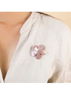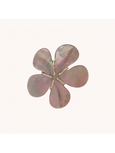 Magnifique broche en nacre brune et laiton. Une très jolie pièce à porter seule ou à plusieurs. Diamètre environ 5 cm.