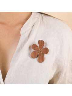Magnifique broche fleur en bois de bayong et laiton. Largueur environ 7 cm. Ce bijou est fabriqué à la main en France et est une création originale de Nature Bijoux.