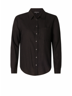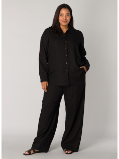 Chemise de forme classique en mélange lin 55% et viscose 45%.  C'est la chemise à avoir dans son dressing pour l'été. On peut la porter pour un total look noir et  fermée, ou ouverte sur n'importe quel tee-shirt et top, ou encore pour cacher les bras d'une robe d'été. Tissu agréable et très résistant.