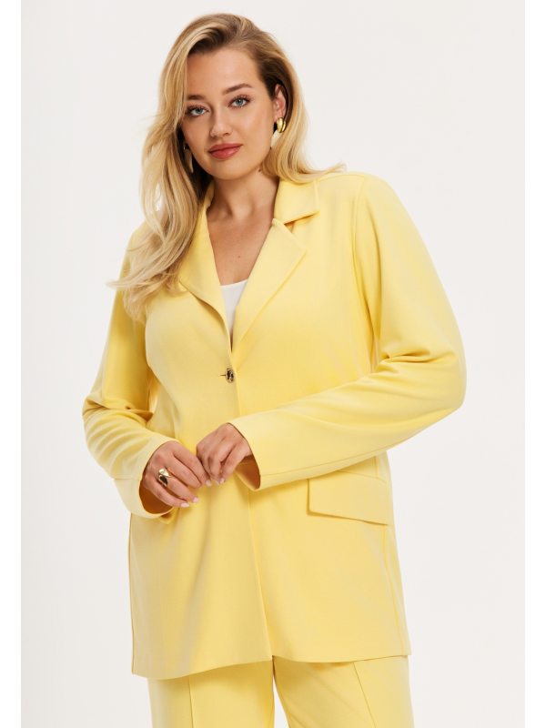 Je n'ai pas eu l'occasion de faire une photo avec ce blazer mais il donne super bien par exemple sur du bleu marine ou avec un jeans et un joli tee-shirt. Dans un beau tissu un peu maille. En viscose et polyamide. Une beauté, il est souple aussi et facile à porter et bien structuré. Hauteur environ 80 cm.