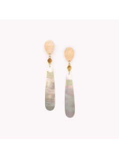 Longues boucles sublimes en nacre et nacre rose. Hauteur environ 9 cm. Laiton et étaim. Une belle création Nature bijoux.