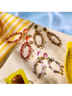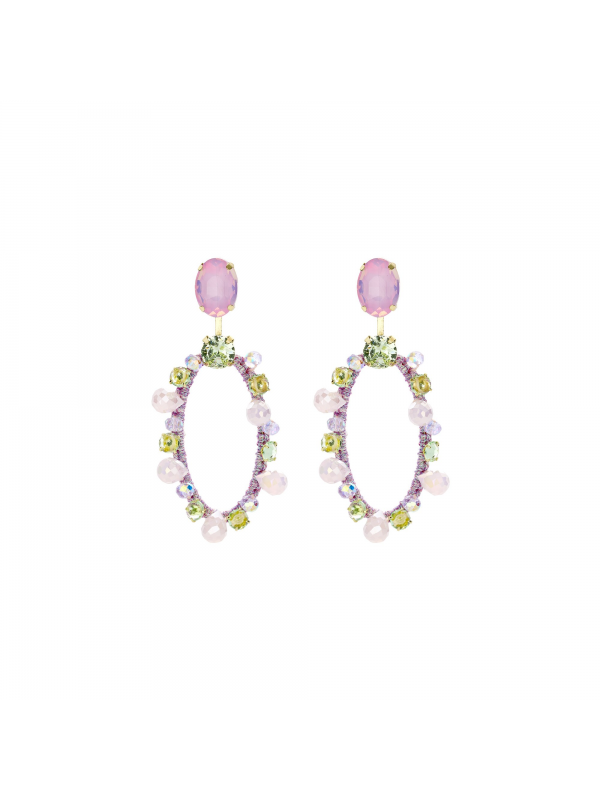 Longues boucles romantiques en verre, métal sans nickel et textile. Hauteur environ 7.8 cm.