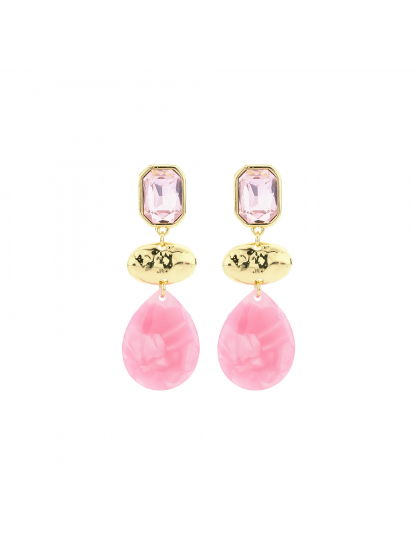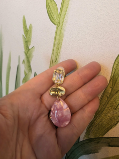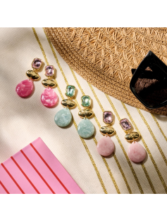 Boucles clips en verre, résine et métal doré sans nickel. Elles ne font pas mal. Hauteur environ 5 cm