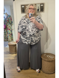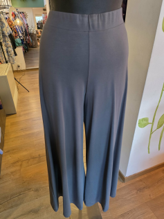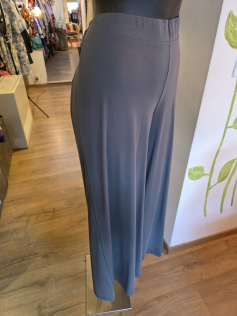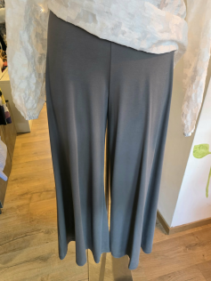 Pantalon ultra large comme le noir du début de saison mais en gris. A enfiler, taille élastique, jambes ultra larges. Qualité impeccable. En 60% viscose, 31% polyamide et 9% élasthanne. Entrejambe : 80 cm.