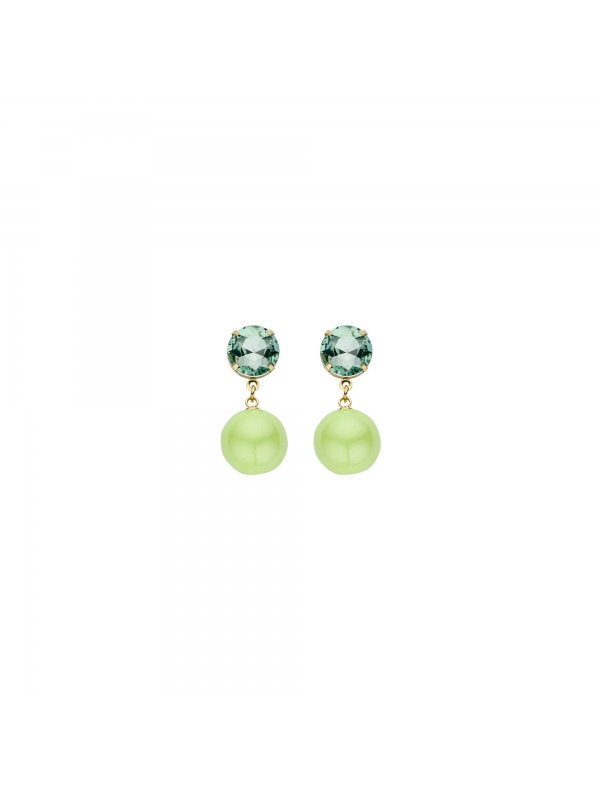 Petites boucles mauves en verre et perle aux mille reflets. Métal doré sans nickel. Hauteur : 3.5 cm