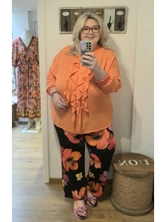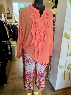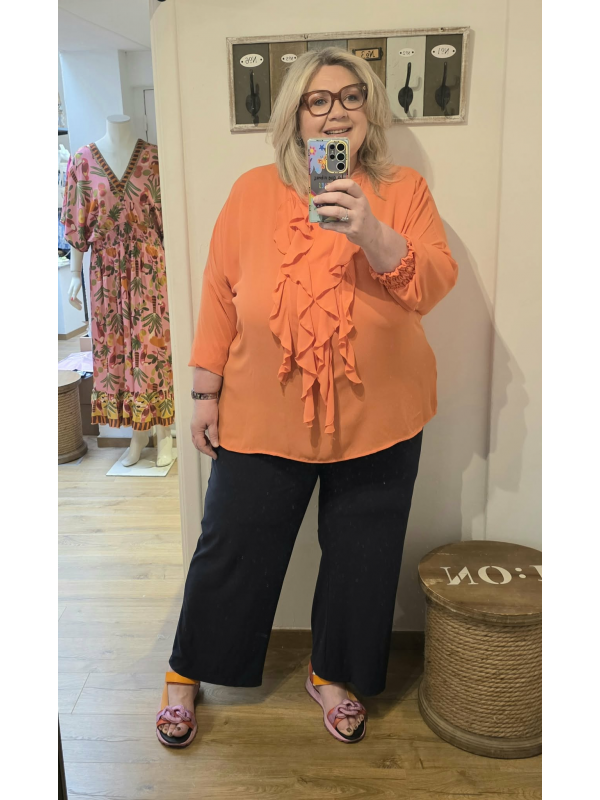 Ce chemisier a tous les avantages car il ne se repasse pas et n'a pas de boutons, donc il s'enfile.. vous me direz c'est une blouse alors. Et oui mais avec le look d'un chemisier ;-) A mettre comme on veut, habillé en tailleur ou sur un jeans et une petite veste décontractée. En crèpe magnifique. Hauteur environ 77 cm.