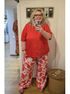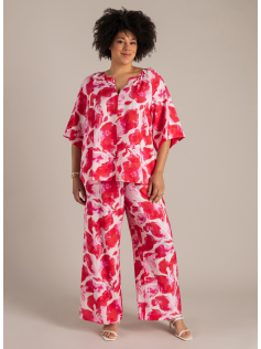 Pantalon large tout élastiqué à enfiler. En 86% viscose et 14% polyamide. Tissu qui ne se froisse pas. Entrejambe environ 80 cm. A porter en total look ou avec une blouse unie.