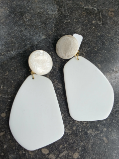 Grandes boucles CLIPS en acetate de cellulose. Grâce au format clips, on peut les porter toute la journée. Hauteur environ 12 cm.