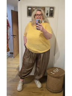 Pantalon 7/8 super large très tendance pour cette saison avec ce look resserré dans le bas. Le tissu est soyeux et magnifique en 70% viscose et 30% polyester. A porter en total look ou avec tout ce qu'on veut même des longues tuniques aériennes.