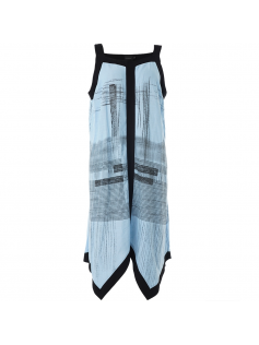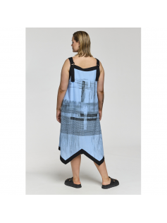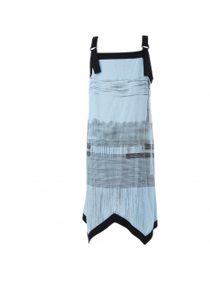 Petite robe d'été super originale avec sa découpe dans le bas. Elle est en 70% viscose et 30% lin. Bretelles larges et réglables. Longueur environ 125 cm.