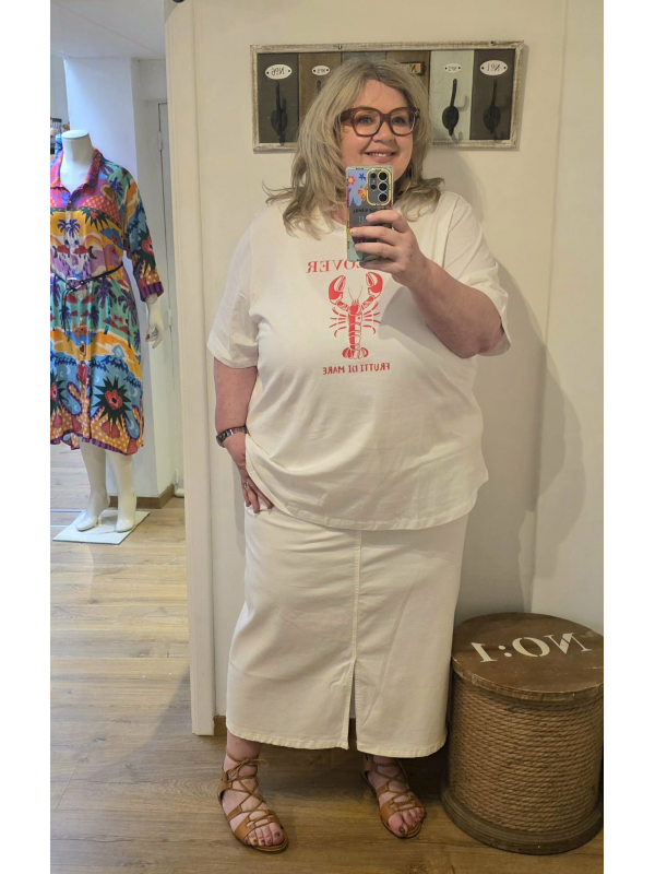 Succombez à la homard mania de la saison avec ce tee-shirt en coton bien long (enfin juste ce qu'il faut). Environ 70 cm.