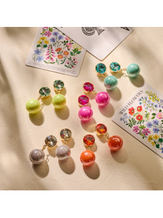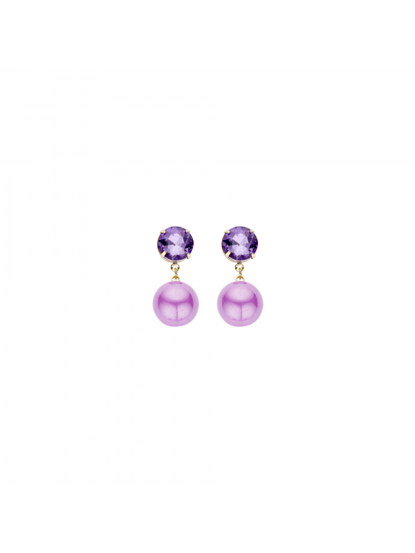 Petites boucles mauves en verre et perle aux mille reflets. Métal doré sans nickel. Hauteur : 3.5 cm