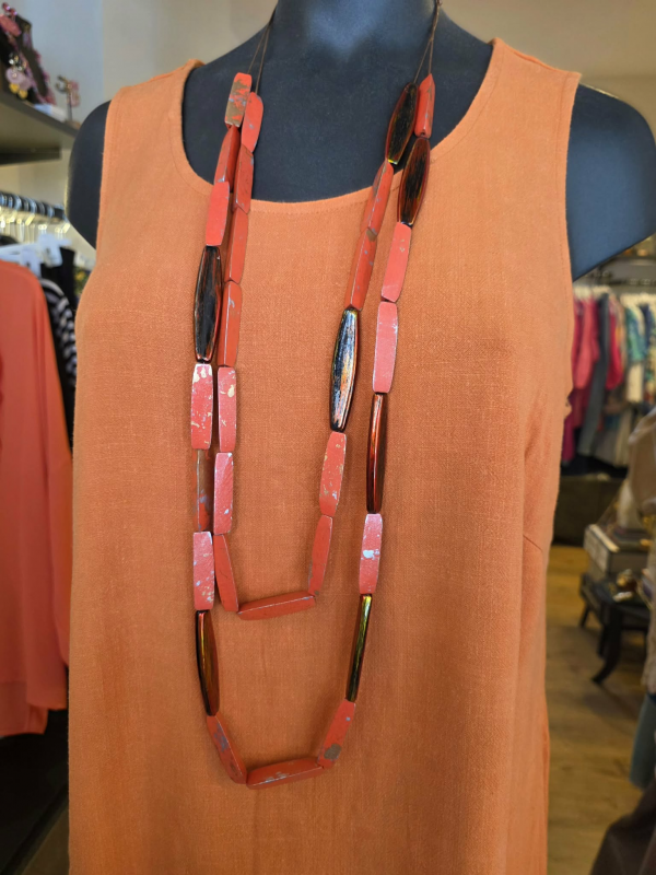 Long sautoir en bois aux jolis reflets